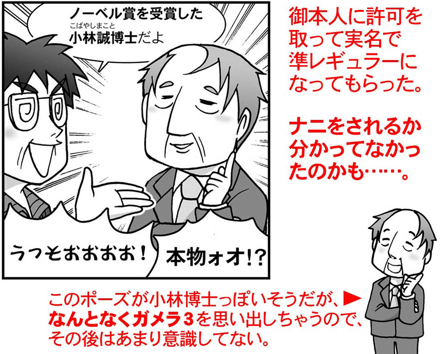 なので、そういう加速器を漫画で紹介する以上、ぜひ小林博士ご本人も漫画に出したいと思ったんだ。