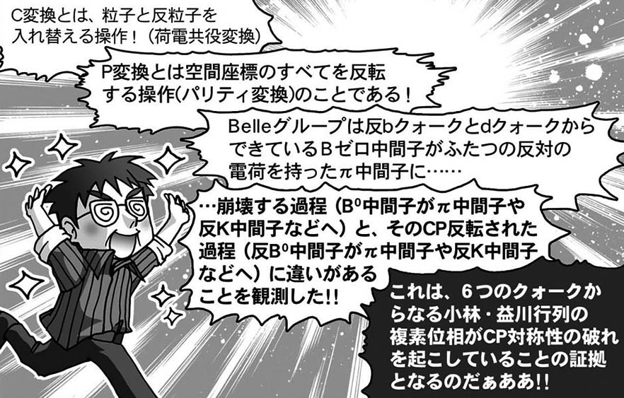 そして、その実験で、小林博士と増川博士が発表した「CP対称性の破れ」という論文の正しさが証明され、2008年にノーベル賞を受賞したわけ。