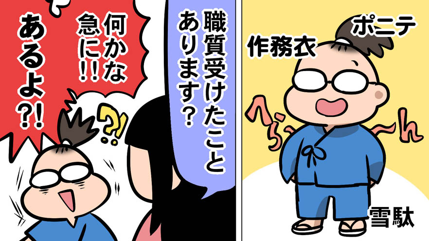 それが、ポニーテールで作務衣で雪駄なスタイル。
