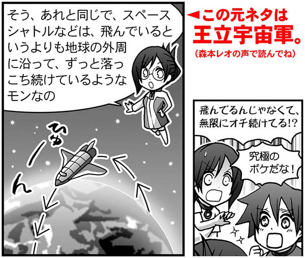 飛んでいるというよりも「地球の丸みに沿って無限に落っこち続けている」ようなものなのだ。