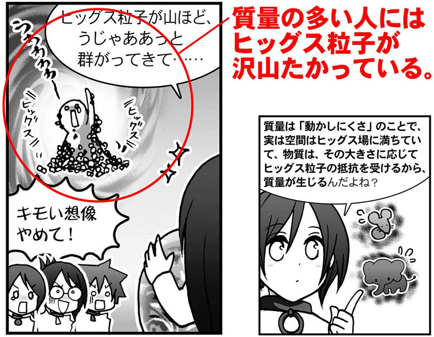 なので、このヒッグス発見直後の2012年8月に描いた「カソクキッズ:ヒッグス特番」では、ヒッグス粒子かどうかはまだわからないという前提で描いている。