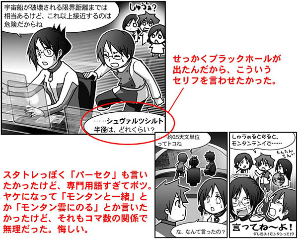 重力レンズ、シュバルツシルト半径、パーセクなど、SFで見慣れた科学用語を使えたから描いてて楽しかったなぁ。