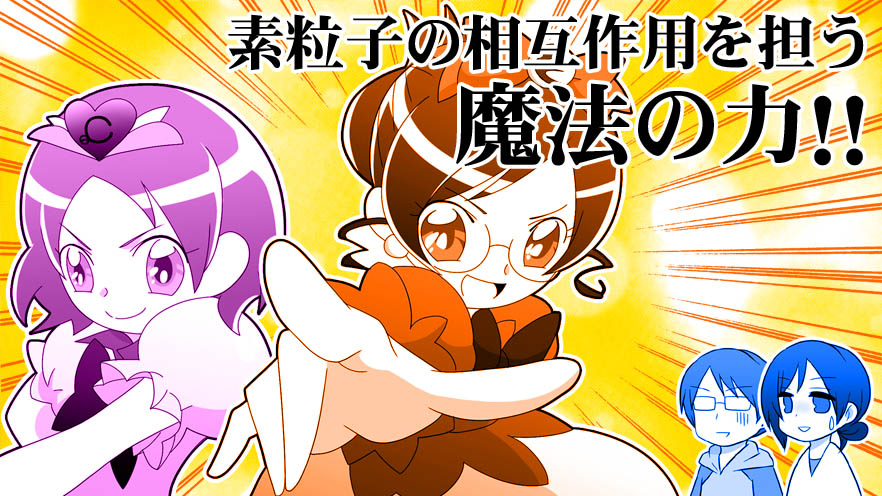 でもまぁ、こういうのを描いちゃったこともあって、ボク的には素粒子の世界では常に「まはりく まはりた」とか「ぴぴるま ぴぷるま ぷりりんぱ」とか「ぴんぷる ぱんぷる ぱむぽっぷん」とか「ぴ〜りか ぴりらら ぽぽりな ぺ〜ぺると」とか、そういう呪文が飛び交ってるイメージになってしまった。